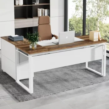 62.2″ L-Shaped Executive Desk with Mobile File Cabinet and Storage Shelves