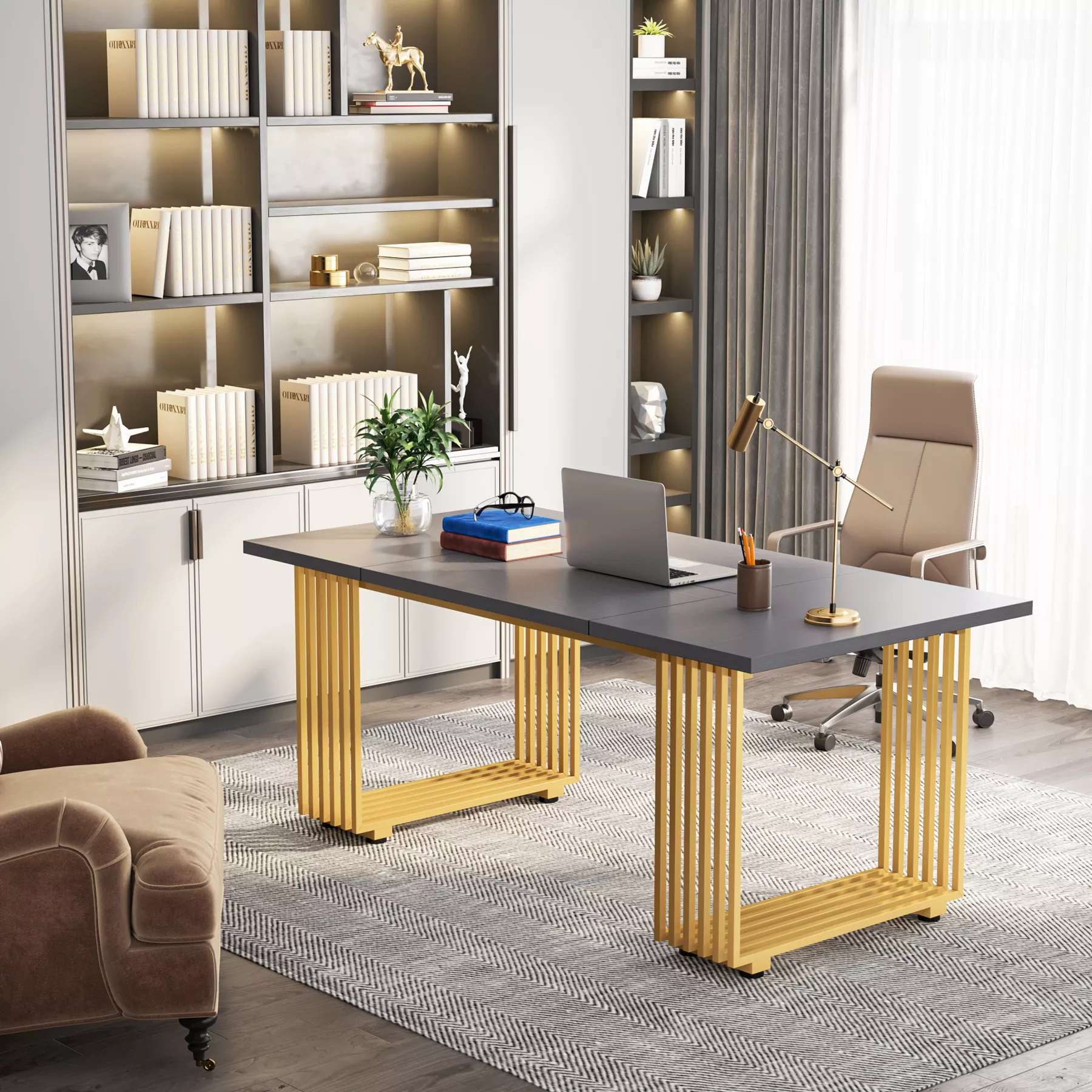 70″ Modern Executive Desk with Gold Metal Legs