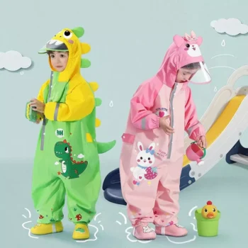 Kids’ Dinosaur-Themed Waterproof Rain Jumpsuit