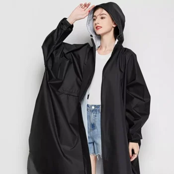 Stylish Long Hooded Waterproof Rain Jacket for All Seasons