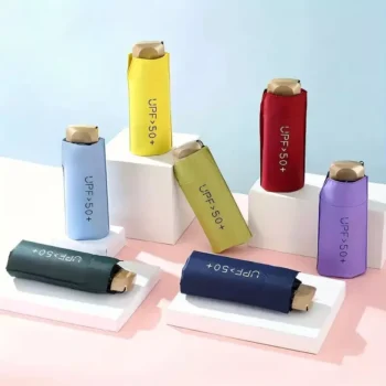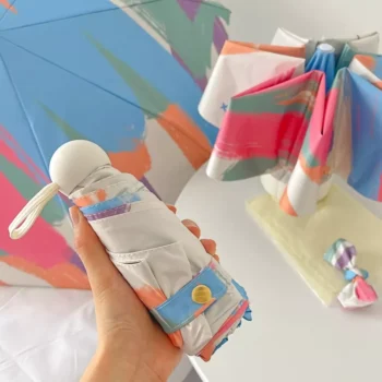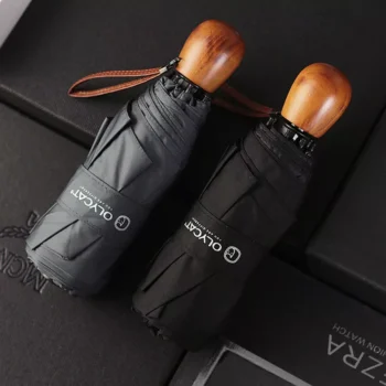 Compact Mini Windproof Umbrella with Wooden Handle for Women