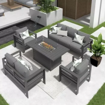 Aluminum Patio Furniture Set with Fire Pit Table, 5-Piece Outdoor Set
