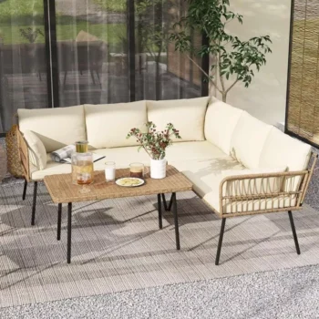 4-Piece Patio Furniture Set with All-Weather Rattan and Soft Cushions