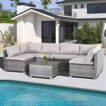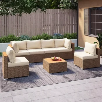 7-Piece Outdoor Modular Patio Furniture Set with Wicker Rattan Sectional Sofa