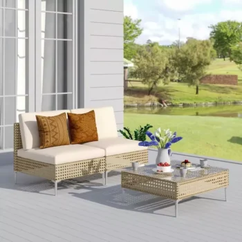 3-Piece Wicker Outdoor Sofa Set with Cushions and Coffee Table