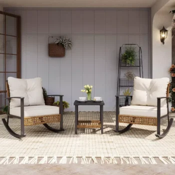 3-Piece Rocking Bistro Set – Outdoor Patio Furniture with Cushions and Coffee Table