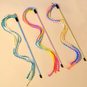 Interactive Cat Teaser Wand with Feather, Bell and Wool Ball Toy