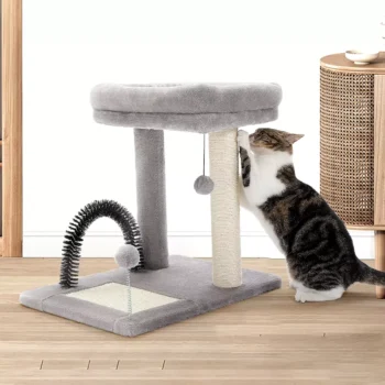 Compact Cat Tree Tower with Natural Sisal Scratch Post and Playful Toys