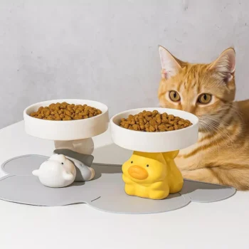 Ceramic Elevated Cat Bowl with Anti-Slip Base and Neck Protection Design