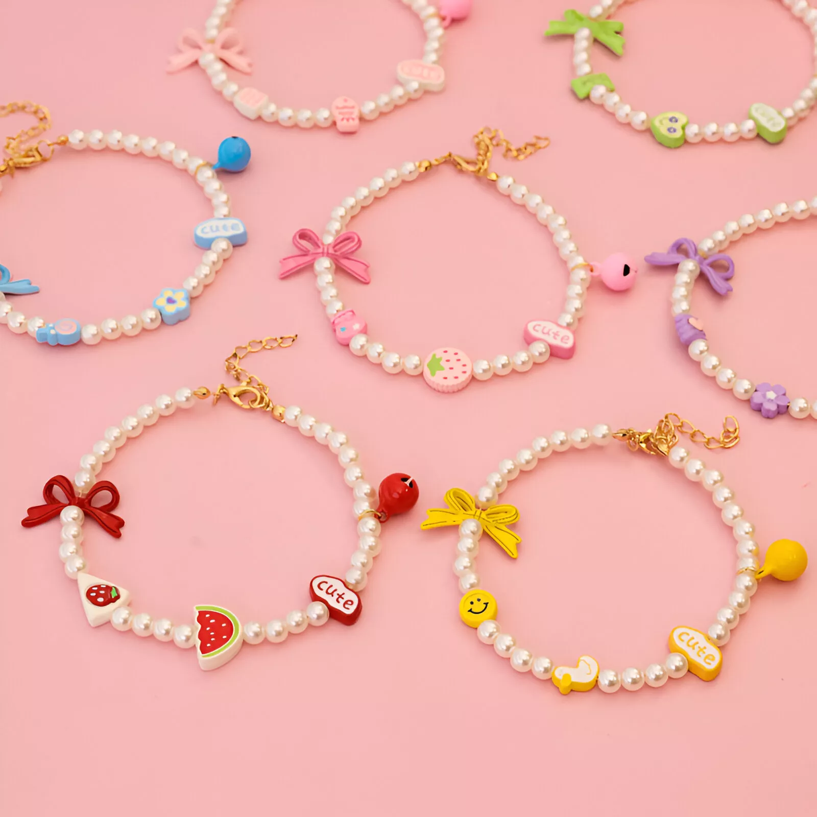 Floral Pearl Bow Pet Collar with Bell for Small Dogs & Cats