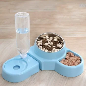 Blue Two-in-One Pet Water and Food Bowl with Automatic Feeder