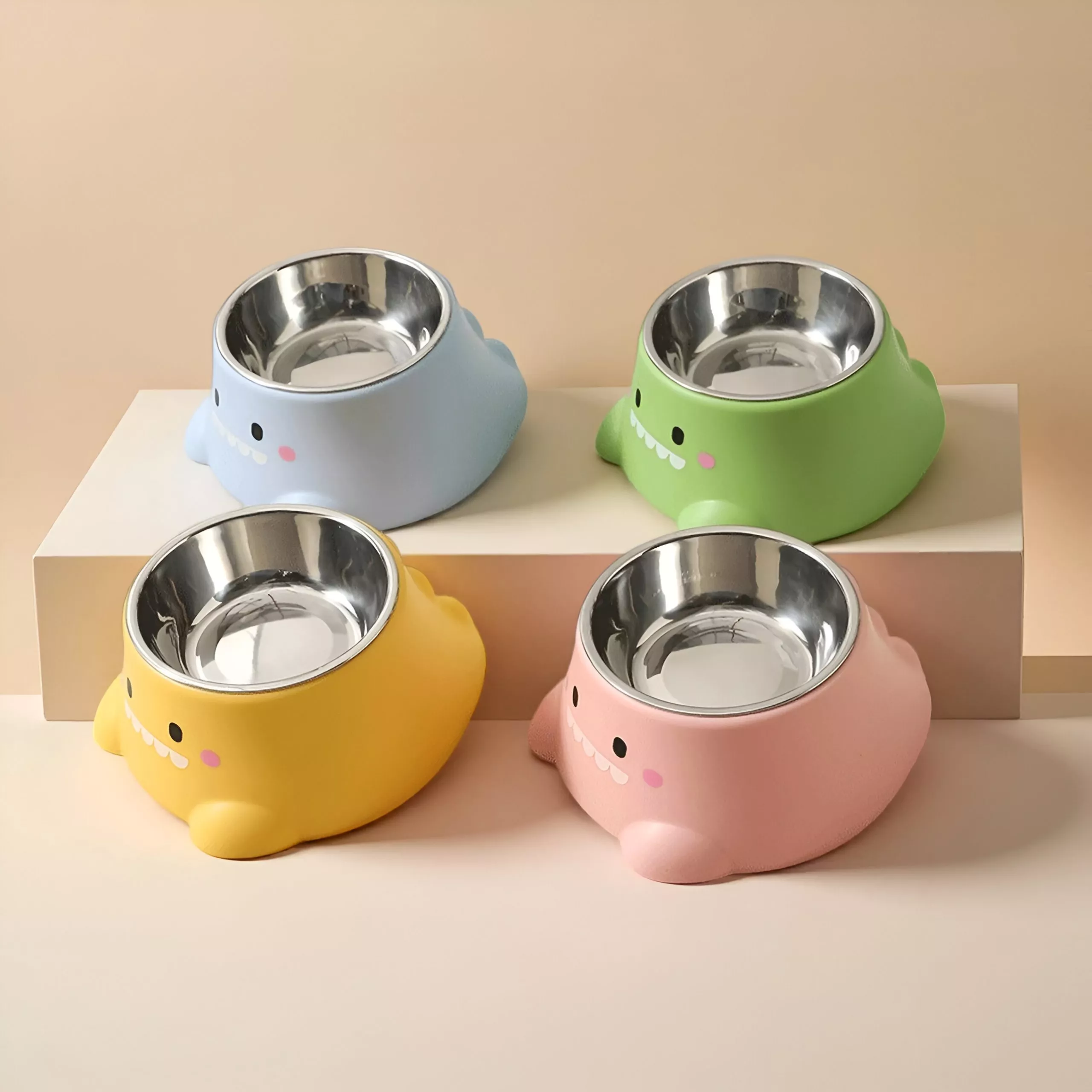 Cartoon Dinosaur Tilted Pet Bowl – Elevated Stainless Steel Dish for Cats & Puppies