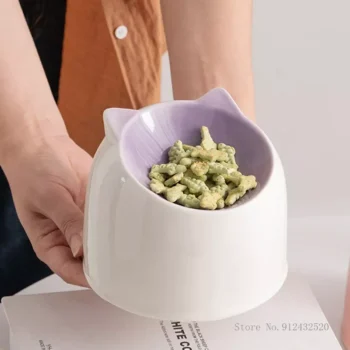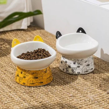 Elevated Ceramic Cat Bowl with Tall Footed Base, Anti-Spill & Neck Protection