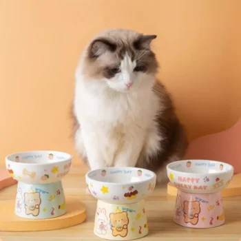 Ceramic Elevated Cat and Dog Food Bowl – Cute Cartoon Design, Large Capacity