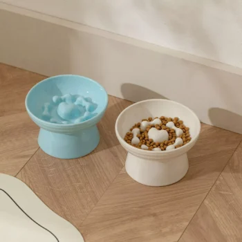 Ceramic Elevated Slow Feed Pet Bowl with Anti-Tip Design