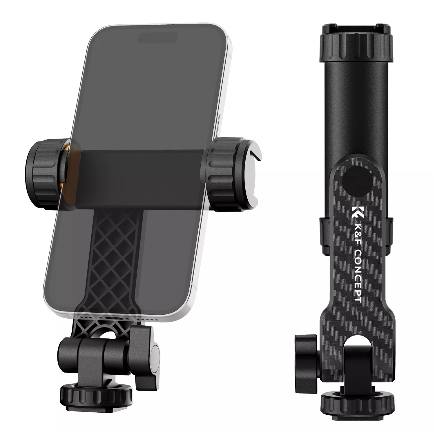 Universal Phone Holder Clamp with Dual Cold Shoe Mount and 360° Adjustable Angle