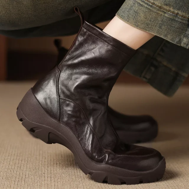 Elevate your everyday look with these chic plus size women’s sheepskin platform ankle boots. Designed for women who value both comfort and fashion, these boots blend timeless charm with modern style. The smooth sheepskin upper gives a touch of luxury, while the side zipper ensures easy wear. Whether you’re heading out for a casual coffee date or strolling through crisp autumn streets, these boots will become your go-to favorite.