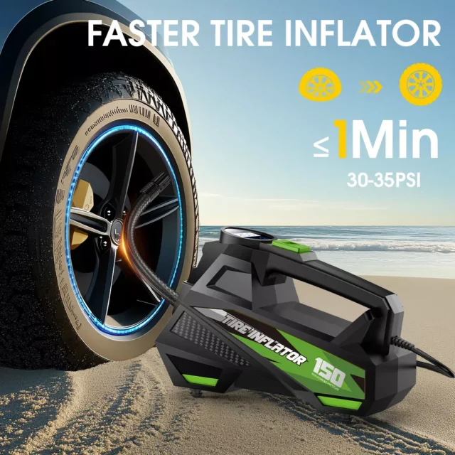 Keep your tires perfectly inflated and ready for the road with this powerful and compact 150PSI wired inflator. Designed for use with cars, SUVs, motorcycles, and even sports balls, this handheld device brings convenience and precision wherever you go. Its sleek design fits easily in your glove compartment or trunk, ensuring you’re never caught unprepared during your adventures or daily drives.