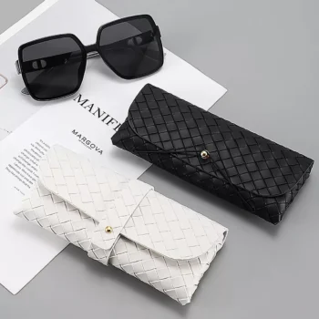 Chic Twist Braided Leather Sunglasses Case with Snap Closure