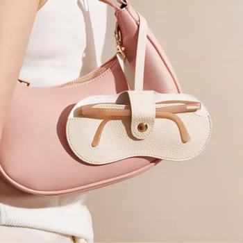 Women’s Luxury Genuine Leather Sunglasses Case with Portable Chain