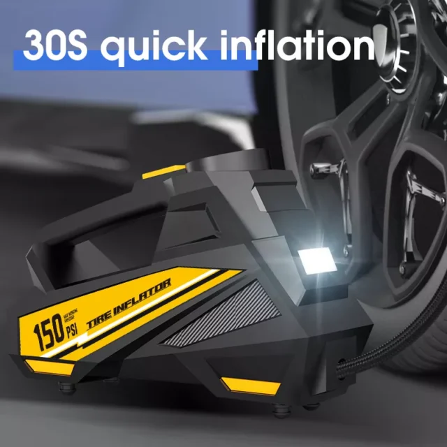 Be prepared for every journey with this powerful and portable 12V electric air pump. Whether you’re inflating car tires, motorcycle wheels, bicycle tires, or sports balls, this compact compressor delivers quick and reliable performance when you need it most. With a maximum pressure of 150 PSI and an easy-to-read digital display, it takes the guesswork out of inflation and puts convenience at your fingertips. Plug it directly into your car’s 12V socket, and you’re ready to go—no bulky tools or professional service required.
