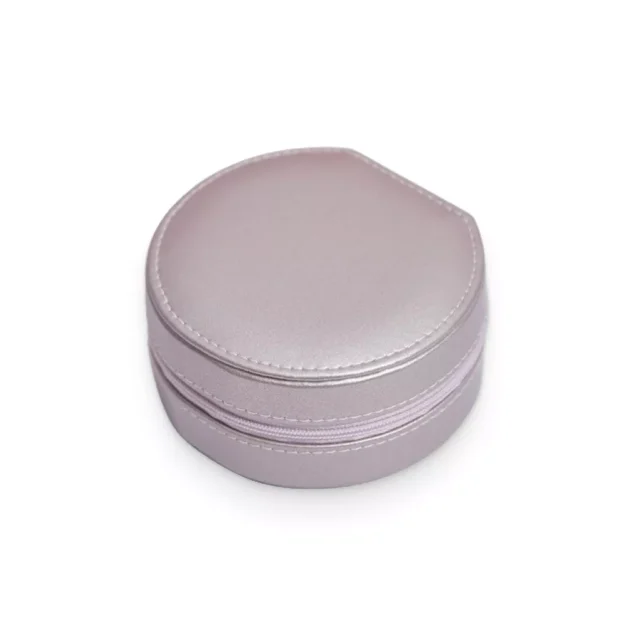 The jewelry storage bag comes at a size of 3.9*3.9*3.9 inches when opened and 2.1*3.9*3.9 inches when closed. The weight: 5.3 oz. Color: Champagne.