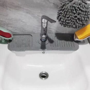 Fits perfectly around the faucet, protecting surfaces from water damage.