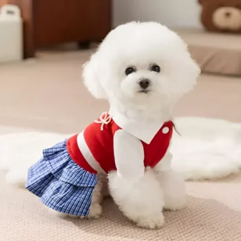 College Style Plaid Dog Dress with Shirt Collar – Autumn Puppy Outfit