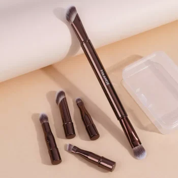 Double Ended Makeup Brush Set – Travel Size Contour, Concealer & Lip Brush with Case