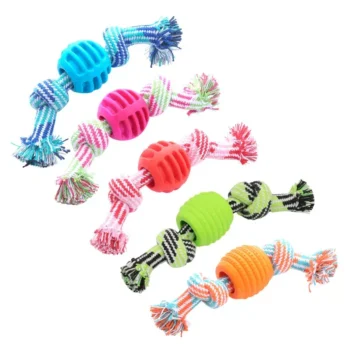 Durable Cotton Rope Dog Toy Ball – Double Knot for Chewing & Teeth Cleaning
