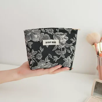 Gray Floral Makeup Bag with Large Capacity & Card Holder