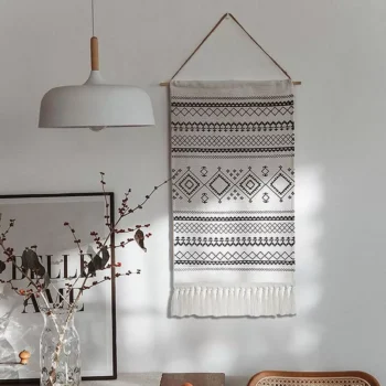 Bohemian Black & White Geometric Macrame Tapestry