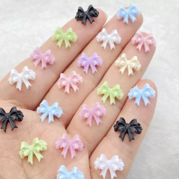 50pcs Colorful Flower Bow Resin Nail Charms for DIY Nail Art & Craft Projects