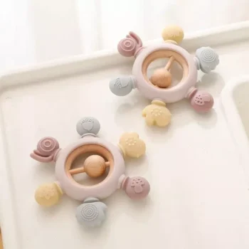 Silicone & Wooden Baby Teether Ring – BPA Free, Eco-Friendly Teething Toy