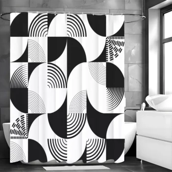 Black and White Geometric Waterproof Shower Curtain with Hooks