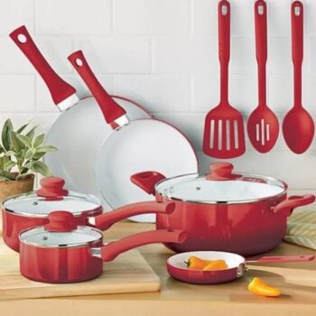 12-Piece Red Ombre Ceramic Nonstick Cookware Set