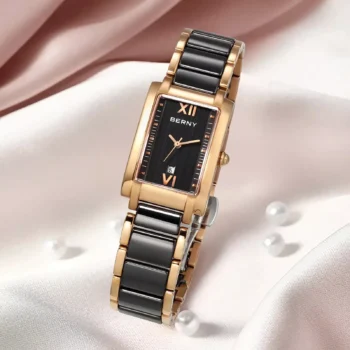 Luxury Women’s Ceramic Rectangle Watch with Calendar & Waterproof Design