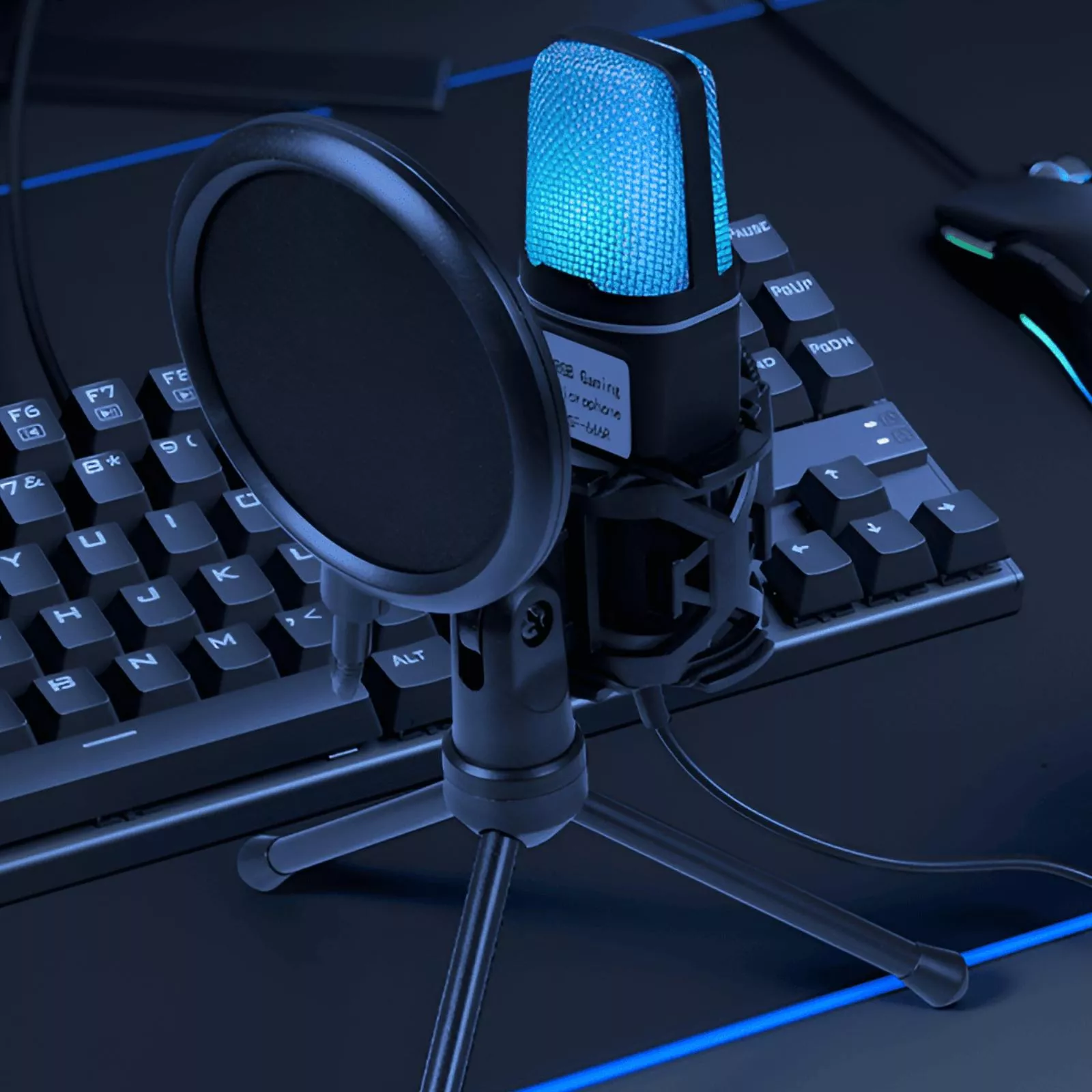 USB Gaming Microphone for PC – Condenser Mic with RGB Indicator and Tripod Stand