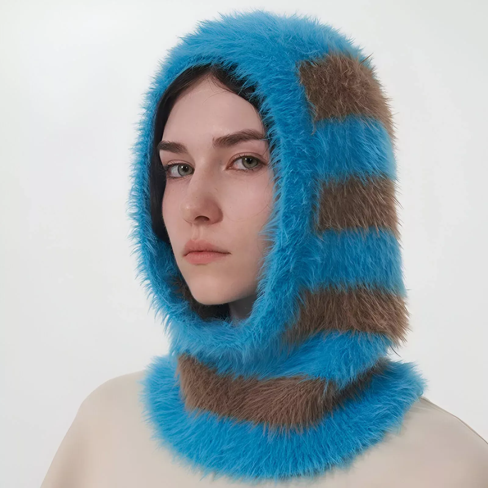 Two-Tone Plush Balaclava Beanie – Retro Winter Neck Protector