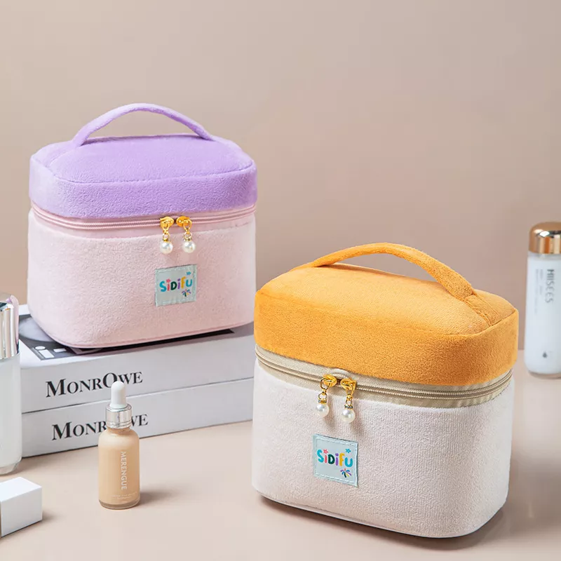 Cloud Color Collision Portable Makeup Bag – Soft Fleece Cosmetic Storage Pouch