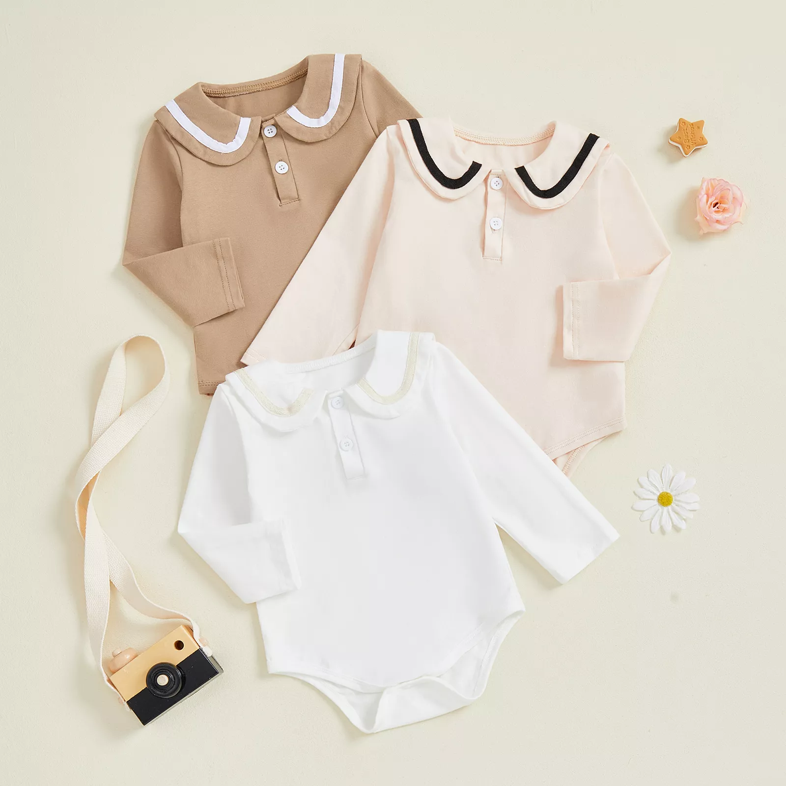 Unisex Baby Sailor Collar Romper with Contrast Trim