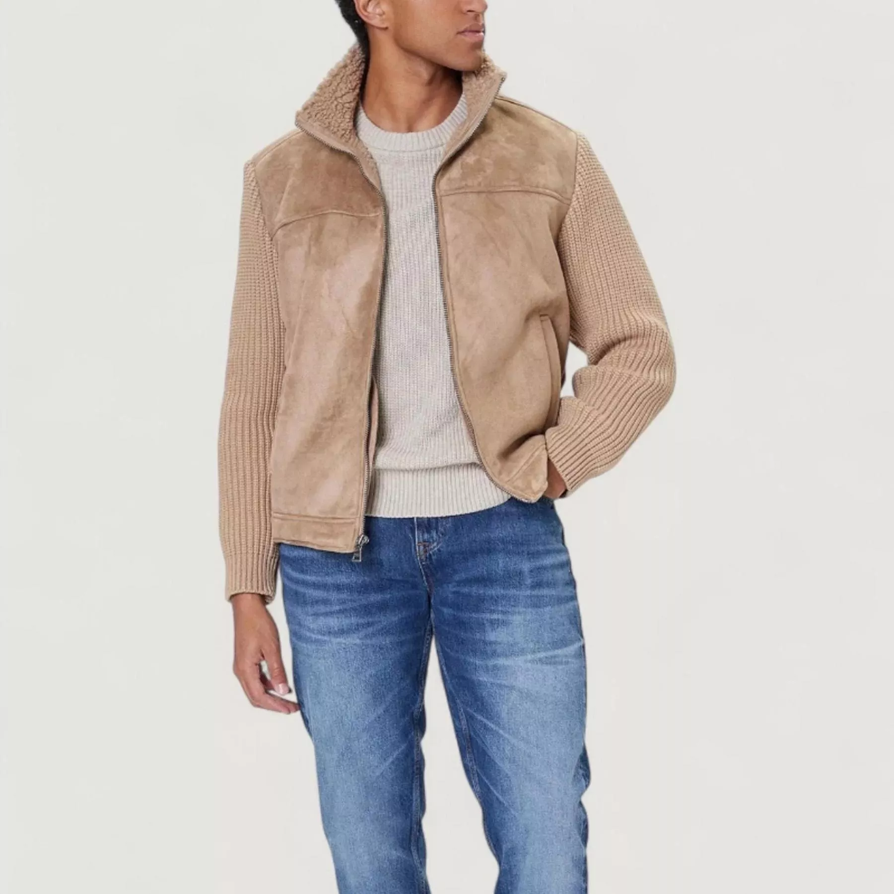 Guess Beige Turtleneck Jacket for Men