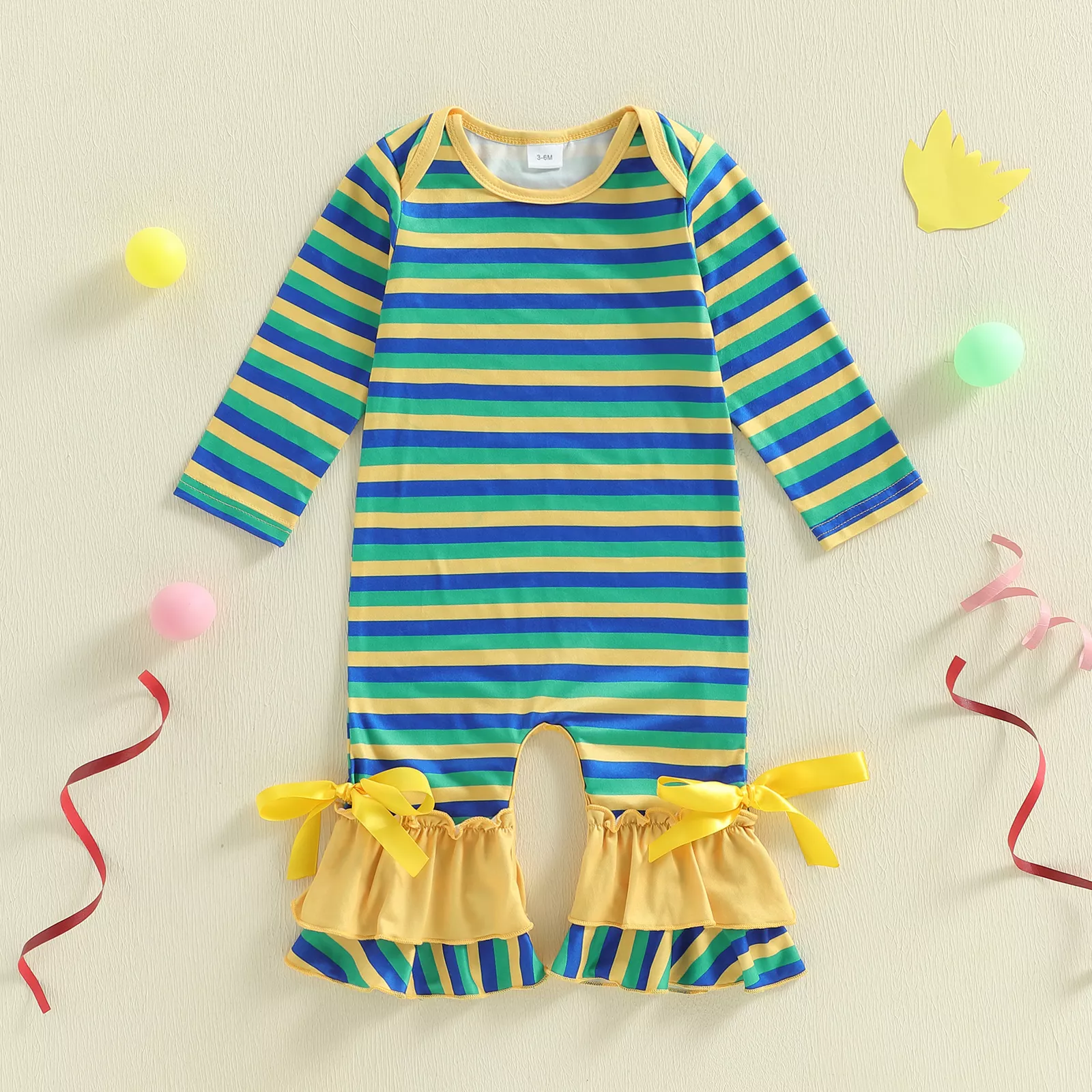 Baby Girl Striped Ruffle Long Sleeve Romper for Winter
