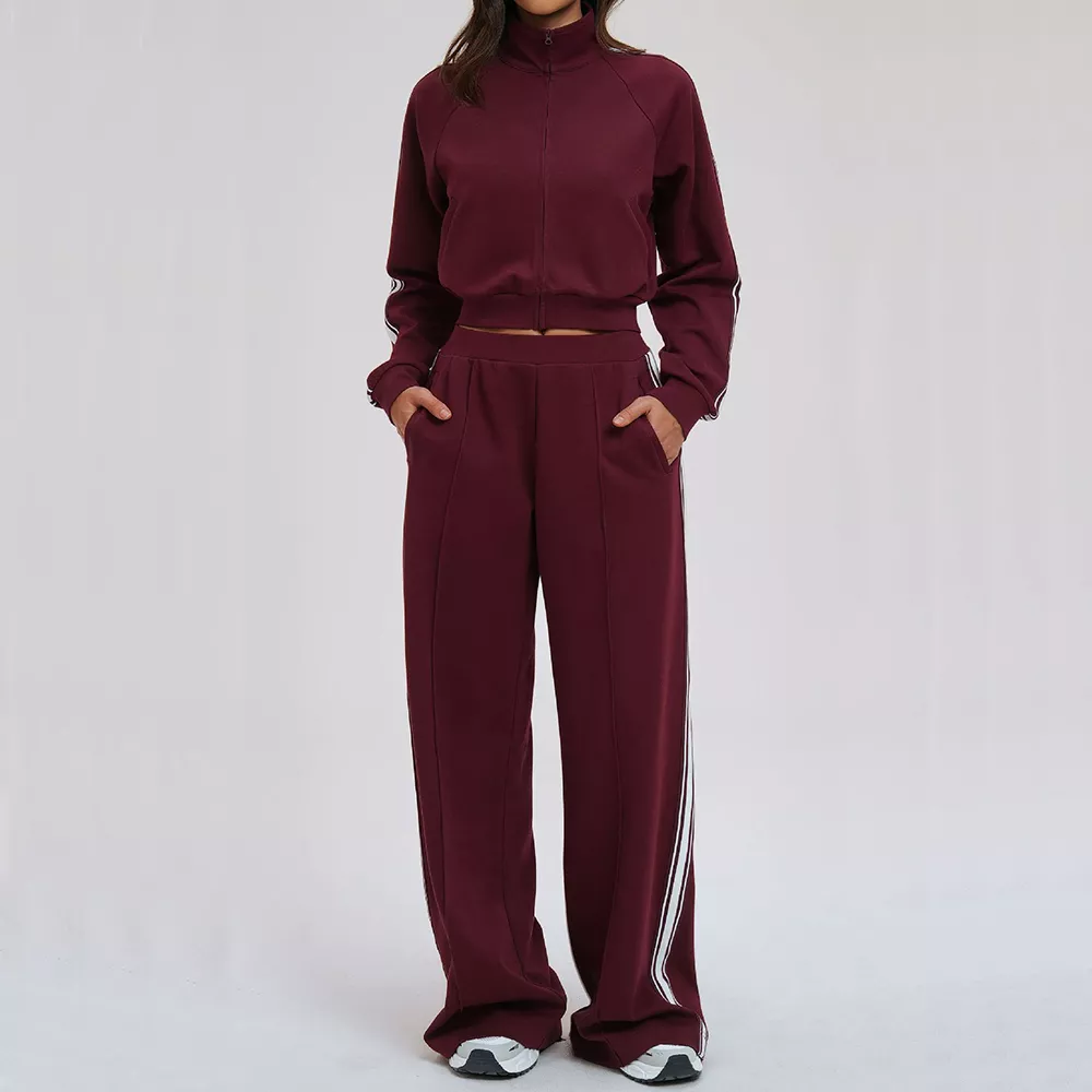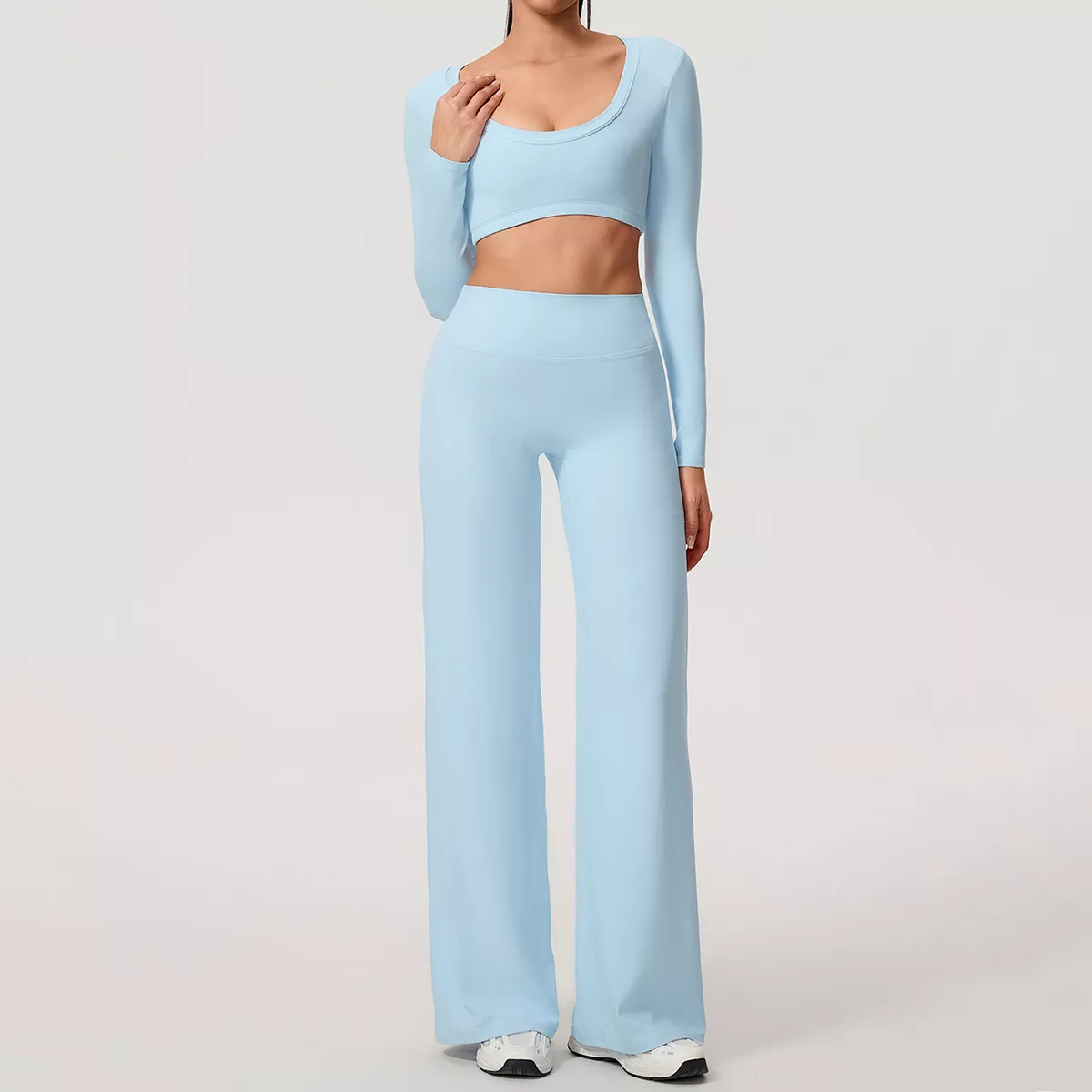 Backless Long Sleeve Yoga Top & Wide Leg Fitness Pants Set