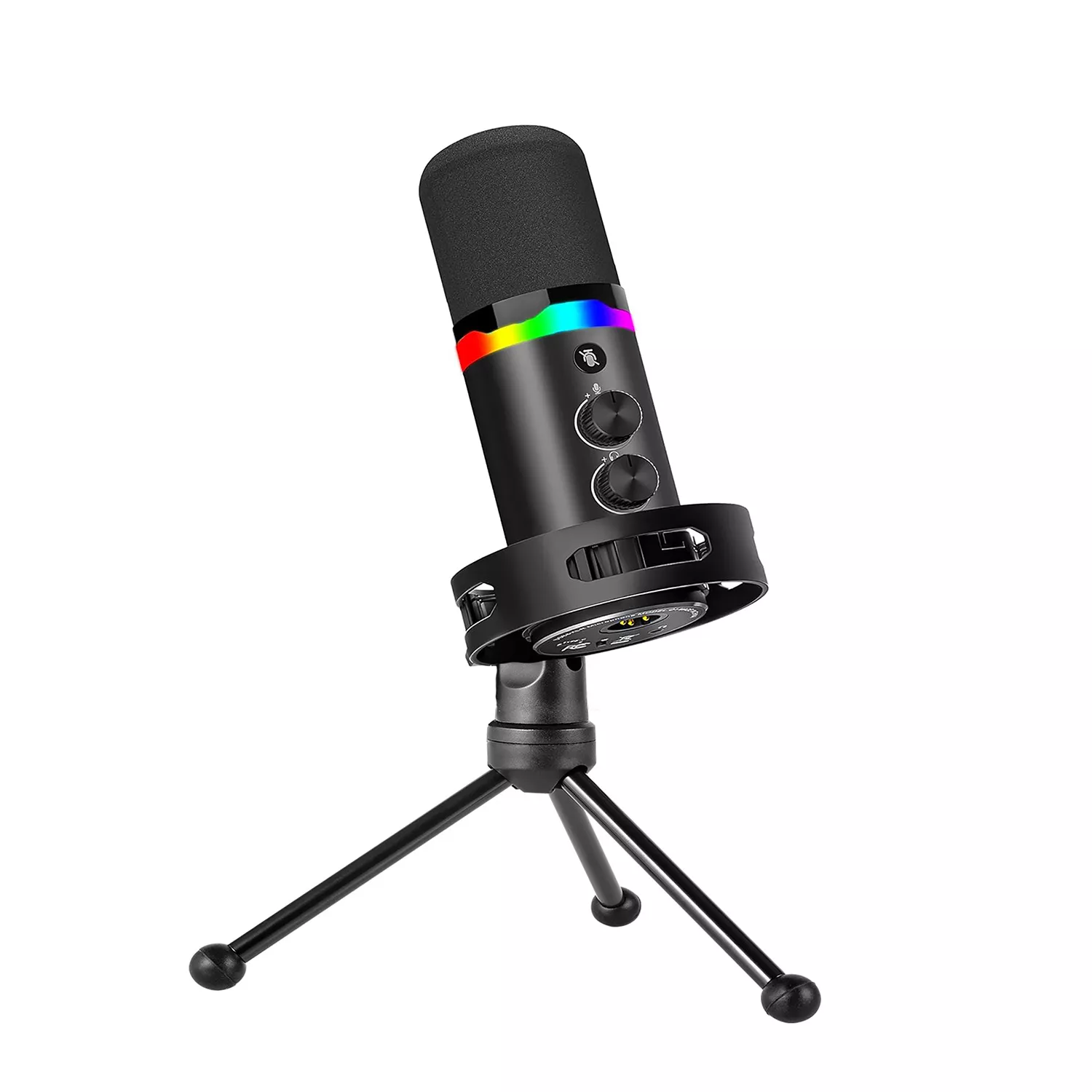 USB RGB Gaming Microphone with Shockproof Stand & Zero-Latency Monitoring