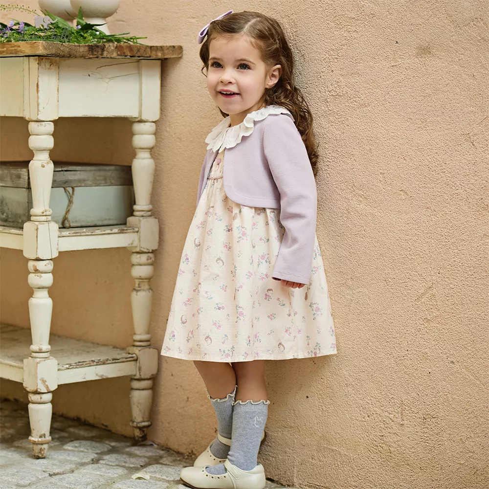 Girls Floral Cotton Sweater Dress – Long Sleeve A-Line Knee Length