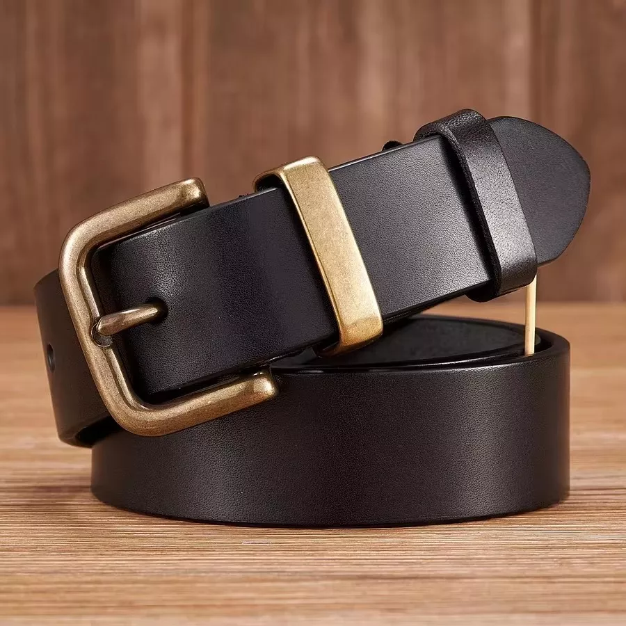 Genuine Leather Men’s Belt with Brass Buckle
