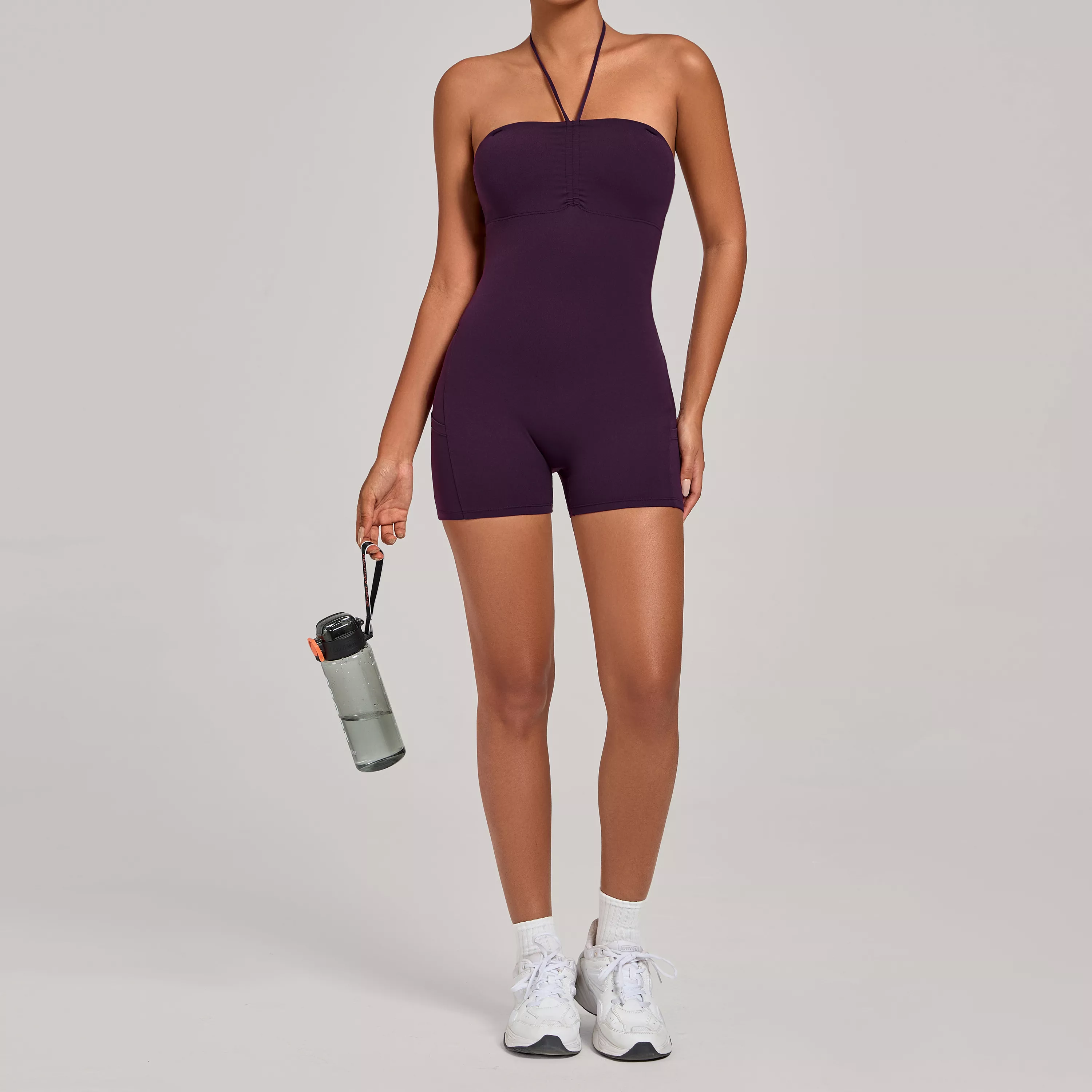 Two-Way Wear Sleeveless Yoga Romper with Side Pockets