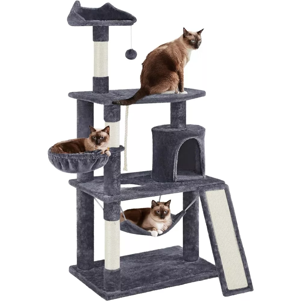 61″ Multi-Level Cat Tree with Scratching Posts & Hanging Toy