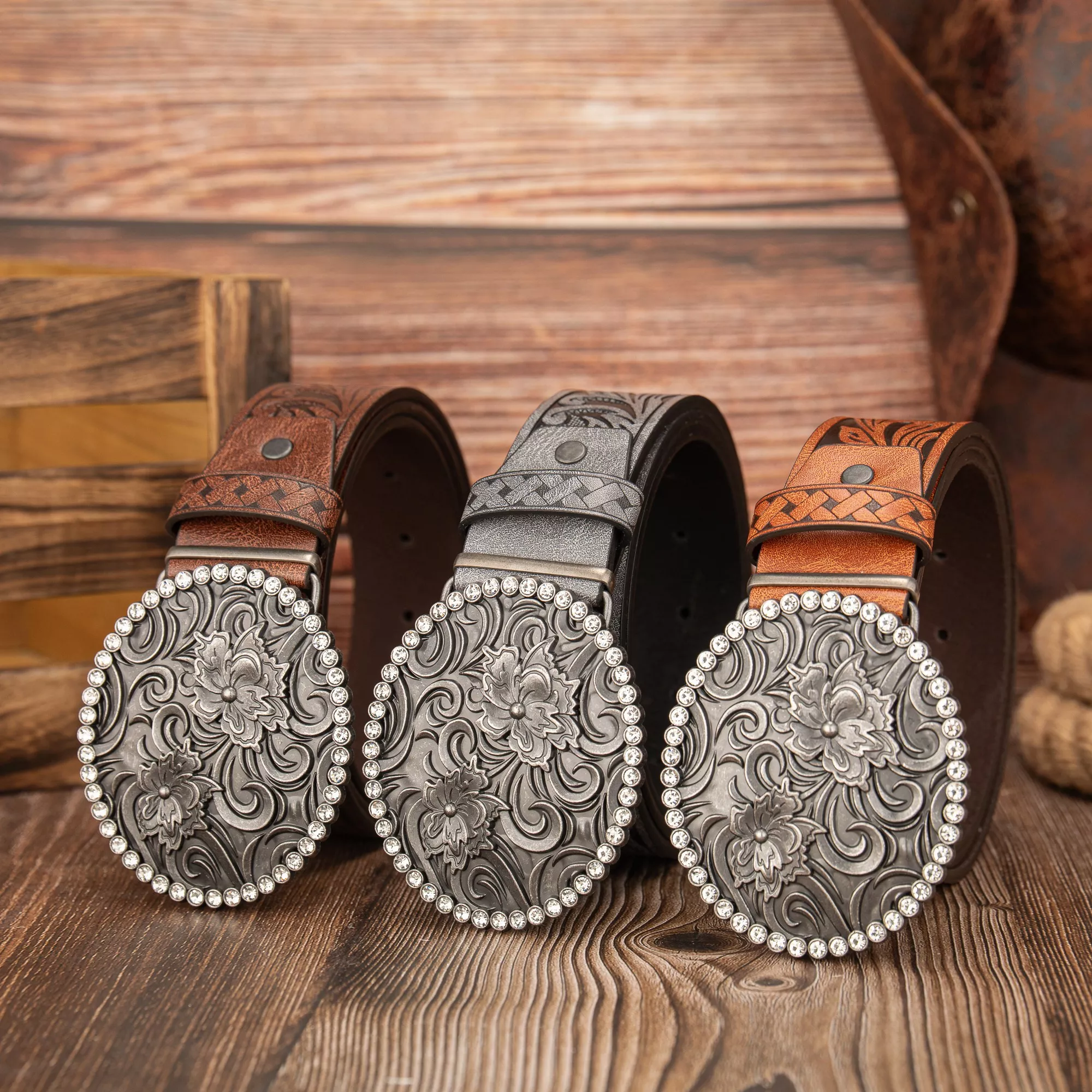Embroidered Diamond Buckle Phoenix Tail Pattern PU Leather Belt